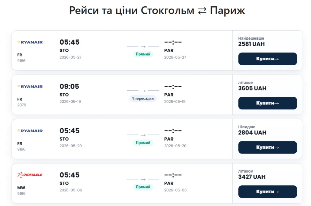TripAlto допомагає відстежувати зміну цін, переглядати акції, використовувати гнучкі дати й порівнювати альтернативні напрямки. Якщо немає жорсткої прив’язки до конкретного дня, фільтри та сповіщення працюють особливо корисно. Сервіс також дозволяє оцінити нічні та денні рейси, щоб вибір був не лише дешевим, а й придатним для реальної подорожі.