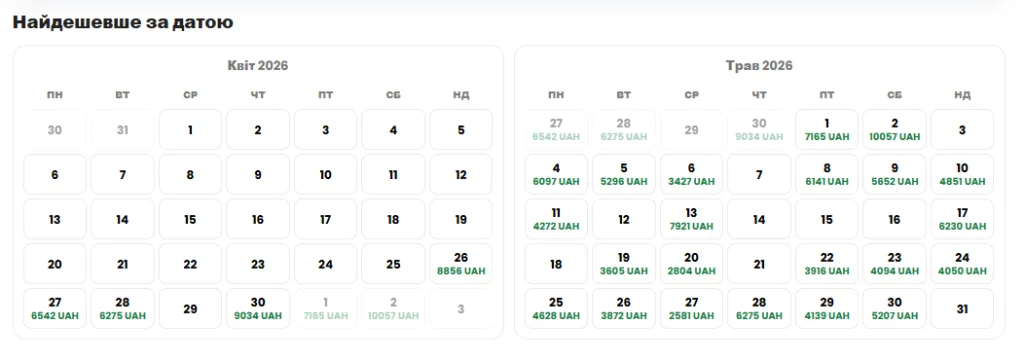 • Перевіряйте сусідні дати, бо різниця в один день іноді суттєво змінює ціну.