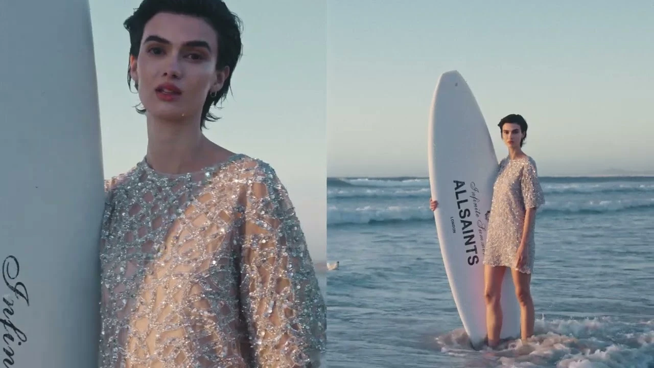 Прості силуети прикрашають стилізованим декором — воланами, мереживом, вишивкою, гофре та плісируванням. Також для суконь AllSaints характерне поєднання контрастних текстур. Наприклад, щільний структурований верх і легкий струмливий низ або вертикальний поділ. Такий контраст робить виріб нетривіальним і привабливим. У моделях часто присутні елементи деконструкції — необроблені краї, асиметрія, драпірування.