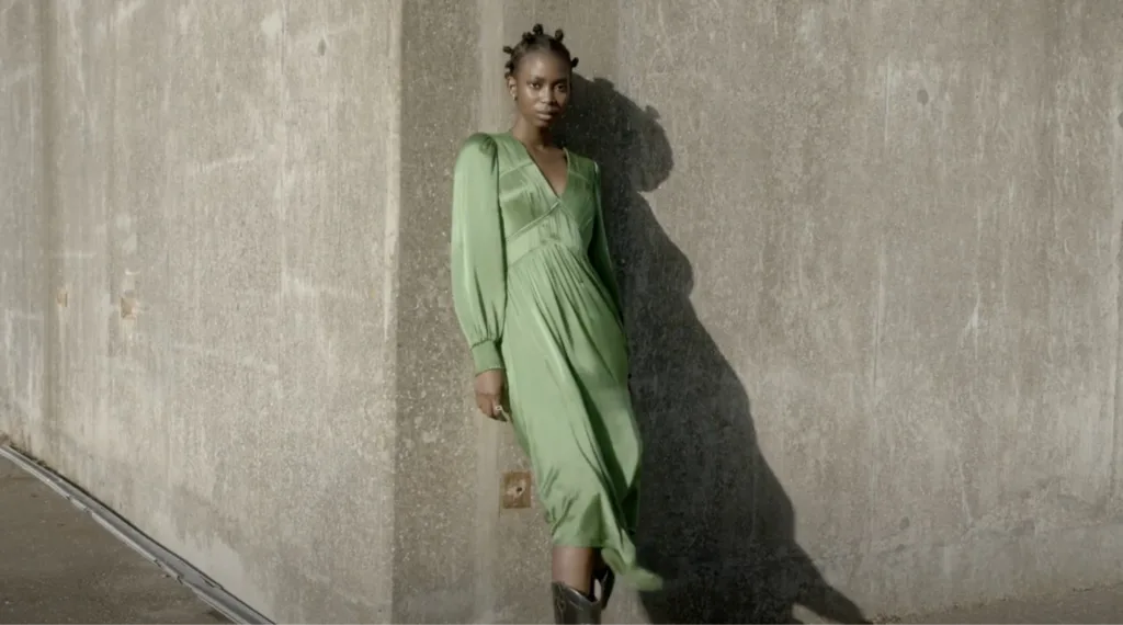 Дизайнери бренду AllSaints надають перевагу м’яким струмливим тканинам для пошиття суконь. Багатошарові моделі шиють із напівпрозорого штучного шовку або віскози, зокрема сертифікованої, екологічно чистої EcoVero. Для більш структурованих моделей використовують: